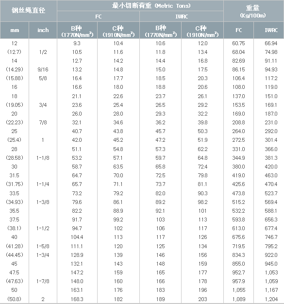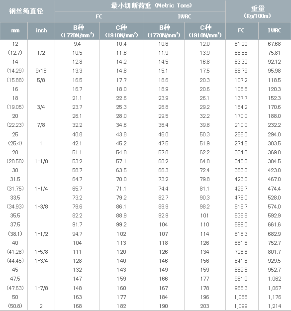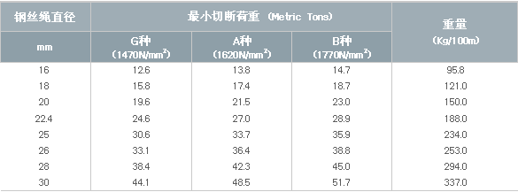 Strand的表面平滑且与Drum、Sheave、Roller和相接触的小 线的表面积大而对这些设备的损伤较小 。 |